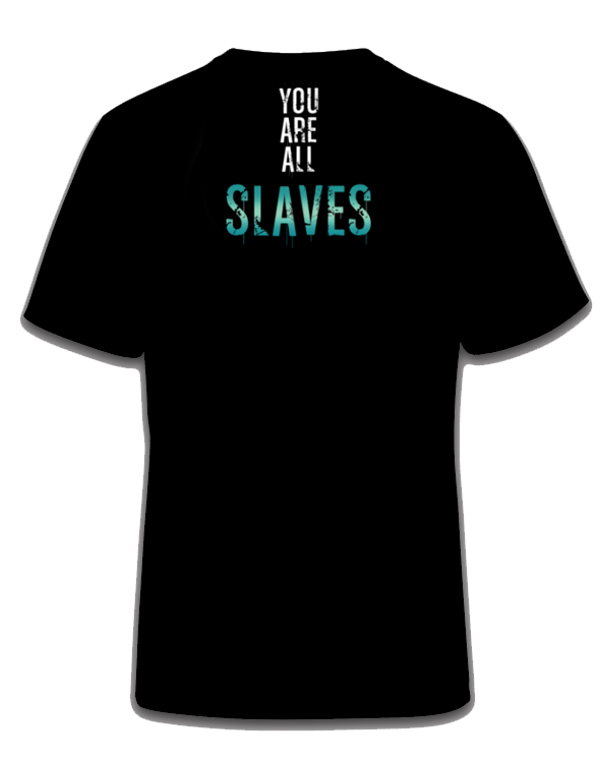 - Rückseite bedruckt mit Schriftzug "You Are All SLAVES"